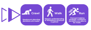 Our approach to implementing Adaptive Planning is incremental, allowing organizations to crawl, walk, and eventually run with the system. This journey improves workforce efficiency on a daily basis.